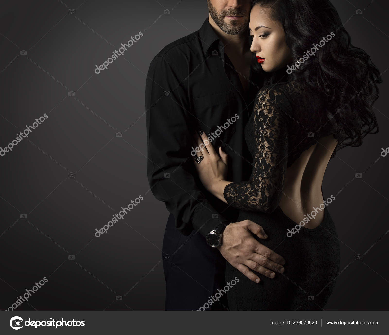 Couple Fashion Portrait Embracing Man Sexy Woman Black Dress Stock Photo By C Inarik 236079520